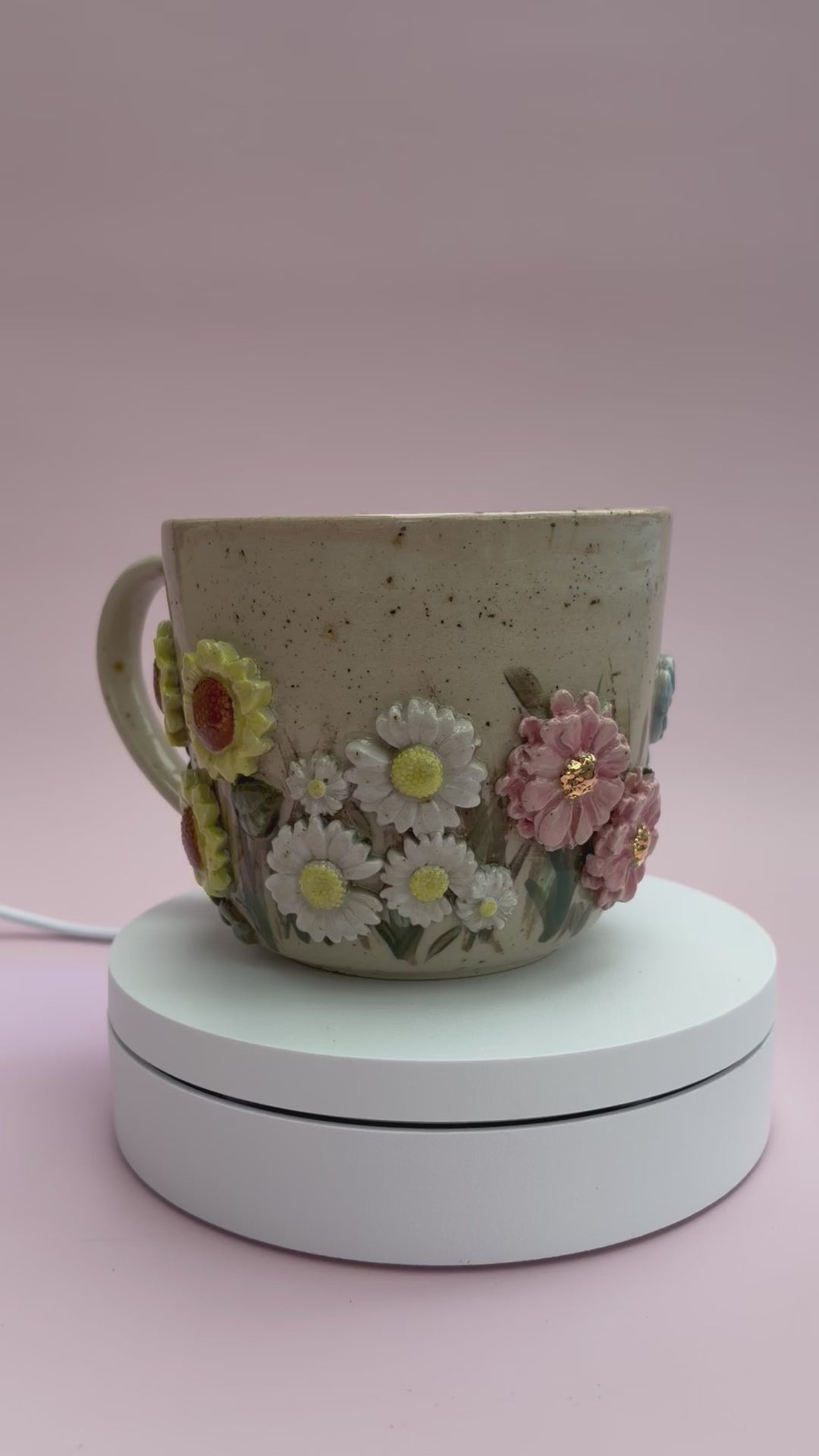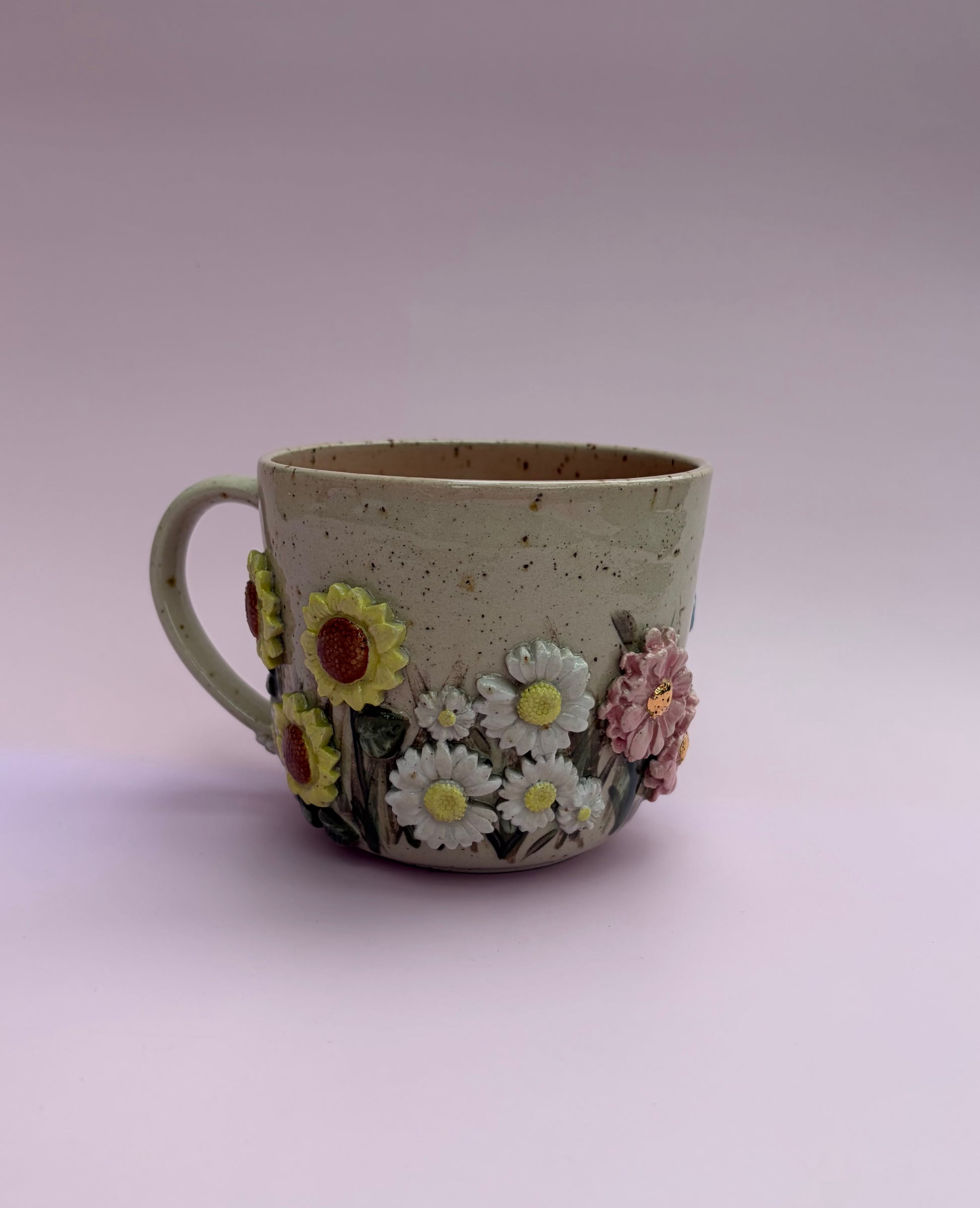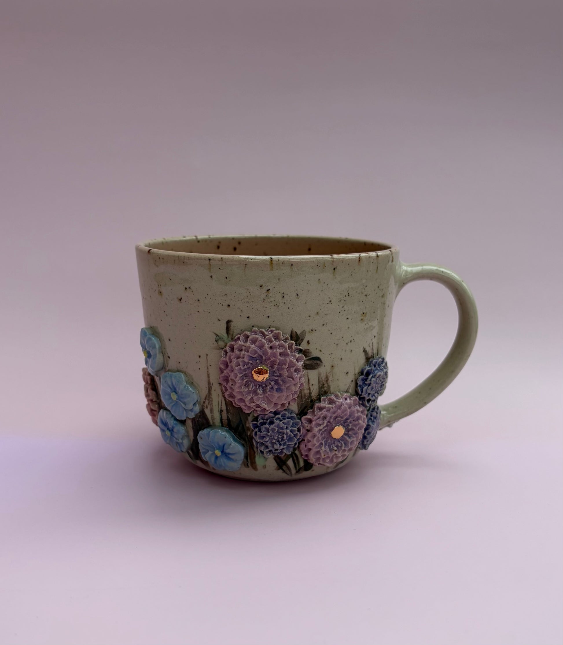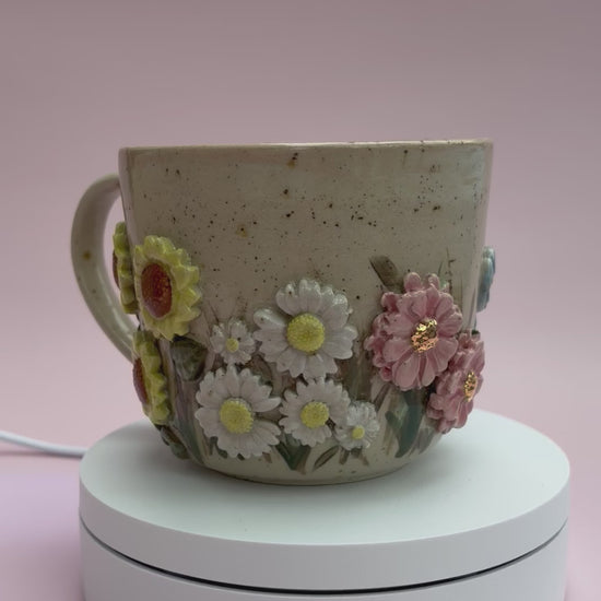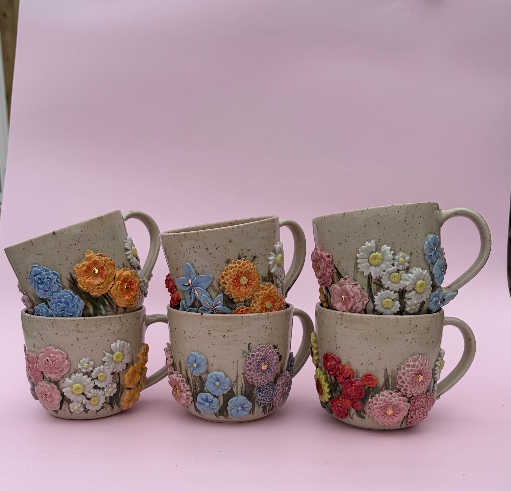 Alle kopper hos Vetche Keramik er unika kopper. Billedet i webshoppen er et eksempel på, hvordan typen "SommerEng" kan se ud.